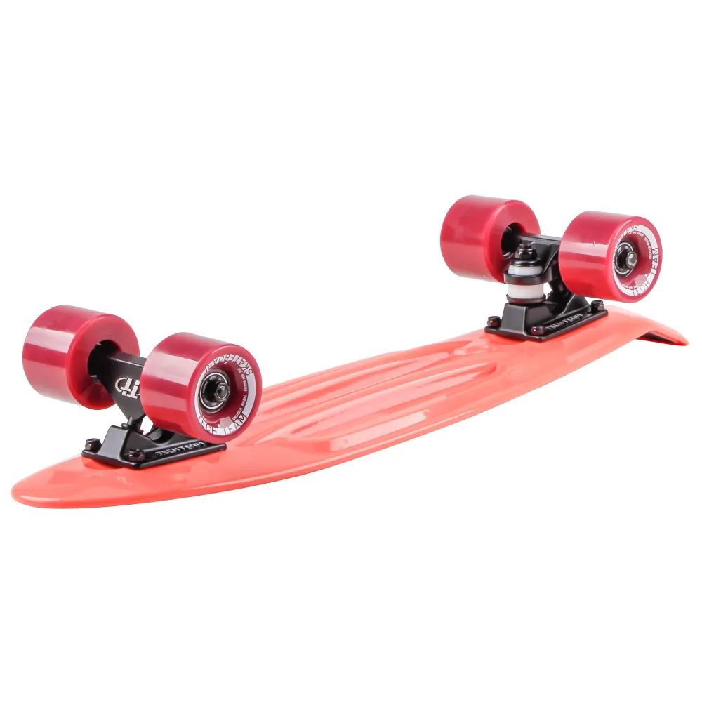 Колесная часть диаметром и шириной 60мм*45мм жесткостью 78А и подшипниками ABEC 7 мало стираемая, долговечная, гарантирует высокое качество езды. Вместе с надежной декой размером 22 дюйма техника доказывает в очередной раз безопасность езды. Бушинги имеют параметры жесткости 85А.