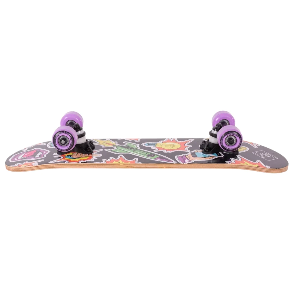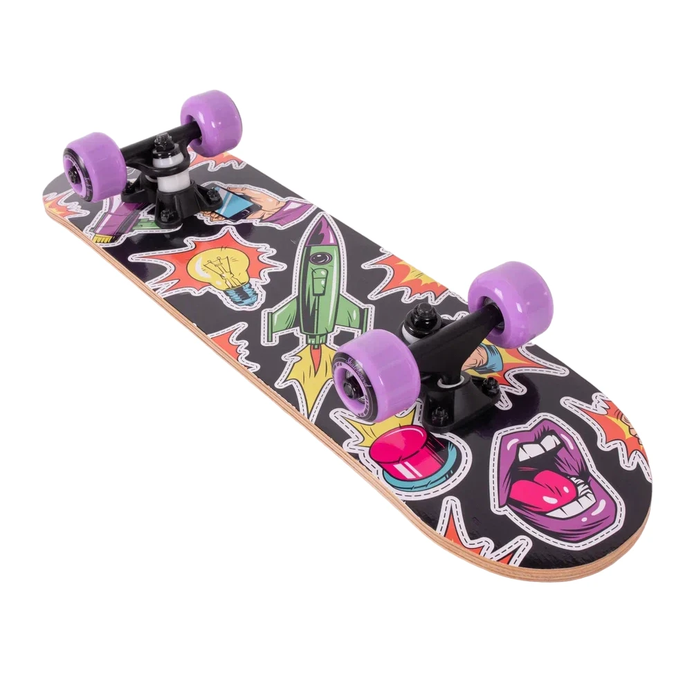 Скейтборд Tech Team Profi 2024 фиолетовый - это смесь классического стиля и современных технологий. Колеса из полиуретана размером 50x36 мм с жесткостью 85А обеспечивают стабильность и динамичность в движении. Дека, выполненная из 9 слоев высококачественного китайского клена, с размерами 24”х6”, обеспечивает уверенность в каждом движении. Черная шкурка 80AB на верхней части деки гарантирует отличное сцепление с ногой, а нижняя часть, украшенная ярким принтом в фиолетовых тонах, воплощает в себе дух свободы и бунтарства. Подшипники ABEC 5 обеспечивают плавное и быстрое движение. Двойной концевой загиб деки (Double Kick) позволяет легко выполнять сложные трюки. Этот скейтборд - ваш верный спутник в городских приключениях.