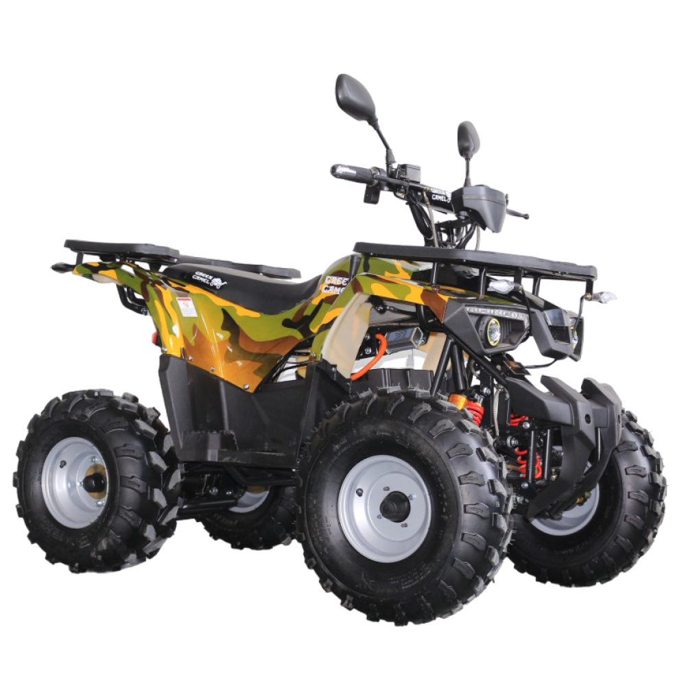 У GreenCamel Atakama T420 имеется сигнализация, фаркоп, LED-спидометр, багажники спереди и сзади. Тормоза установлены на все четыре колеса: сзади – дисковые гидравлические, а спереди – барабанные механические. Присутствуют пружинные амортизаторы. Вес квадроцикла: 115 кг. Габаритные размеры: 1,57x0.8x0.95 м. Квадроцикл также обладает крайне симпатичным дизайном и яркой покраской.