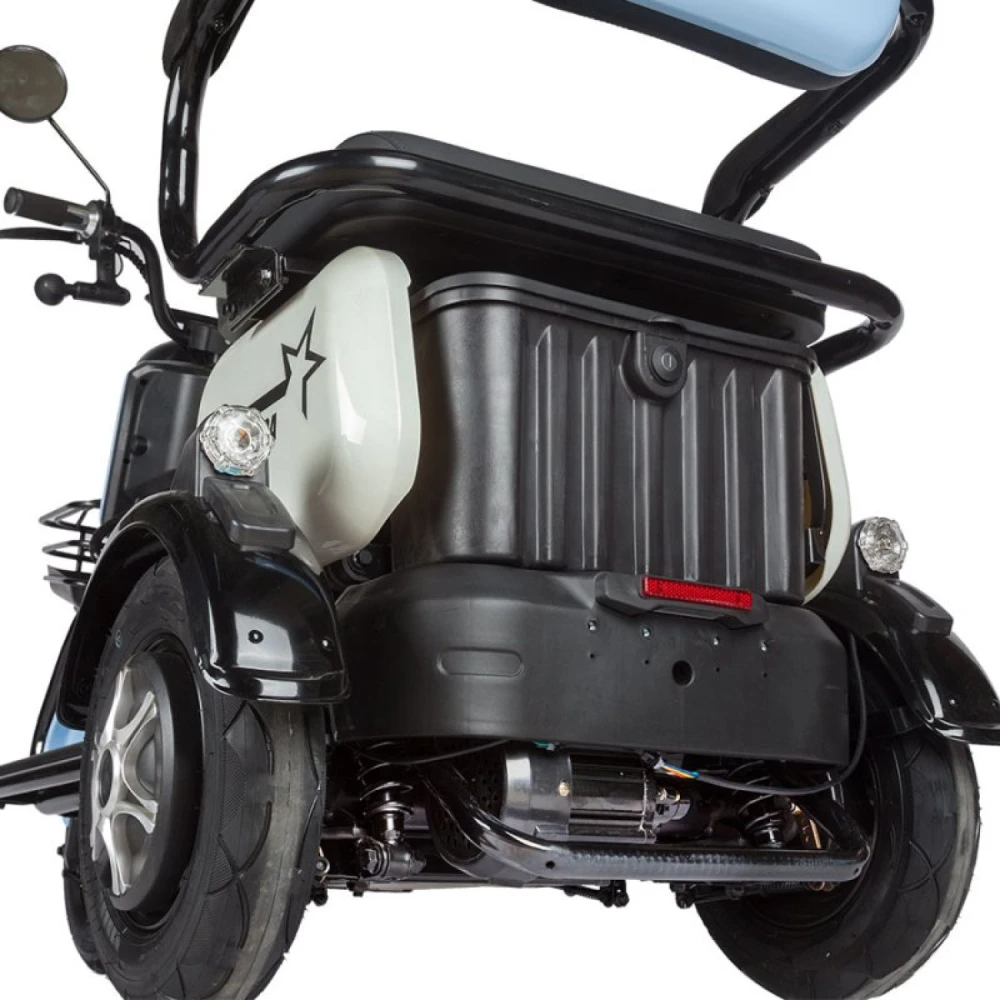 Электротрицикл Rutrike Gelbert Vega 48V/60V 600Вт – это современное транспортное средство, которое выводит городской комфорт и экологичность на новый уровень. Разработанный с учетом практичности и эстетики, этот трицикл идеально подходит для ежедневных поездок по городу, где важны маневренность, надежность и экономичность.Устройство отличается продуманной конструкцией: габариты 1300×720×650 мм обеспечивают компактность и легкость в управлении даже в условиях плотного городского трафика, а вес всего 74 кг делает его удобным для перевозки и хранения. Универсальность модели подтверждается возможностью работы на напряжении 48/60 В – такой диапазон позволяет адаптировать устройство под различные условия эксплуатации, обеспечивая стабильную работу двигателя мощностью 600 Вт.Особое внимание уделено колесной базе: 8‐дюймовые колеса с размером 8"-3.0 гарантируют уверенное сцепление с дорогой и высокую проходимость, позволяя легко преодолевать городские препятствия и небольшие неровности. Благодаря оптимальному сочетанию мощности и размеров колес, трицикл обеспечивает плавный разгон и надежное торможение, что особенно важно для безопасного передвижения в условиях динамичного городского ритма.Кроме того, Rutrike Gelbert Vega отличается высокой энергоэффективностью и экологичностью: электрический привод способствует снижению выбросов и экономии энергии, что делает его отличным выбором для пользователей, стремящихся к устойчивому образу жизни. Компактный дизайн, современная эстетика и продуманная эргономика управления позволяют водителю с легкостью ориентироваться в любой ситуации, а дополнительное оснащение (возможное наличие информационного дисплея и встроенных систем безопасности) обеспечивает постоянный контроль за параметрами движения.Эта модель создана для тех, кто ценит не только динамику и мощность, но и стильный внешний вид, удобство эксплуатации и экономичность. Rutrike Gelbert Vega – универсальное решение для активных горожан, желающих объединить в одном средстве передвижения высокие технологии, надежность и комфорт, делая каждый маршрут приятным и безопасным.