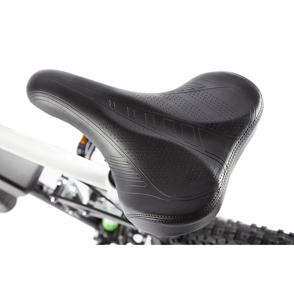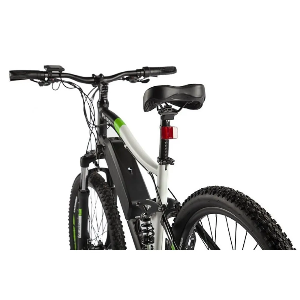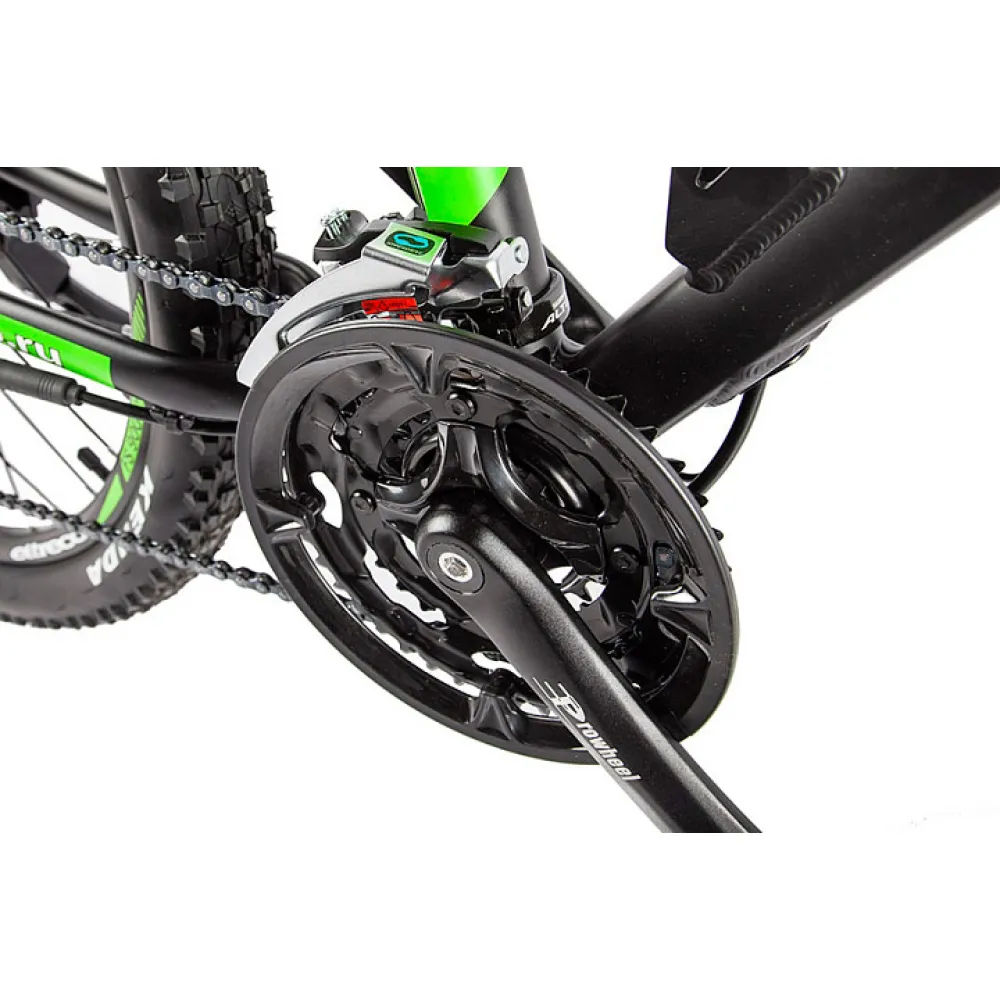 Фирменный двигатель мощностью 350Вт в совокупности с полностью заряженным Li-ion аккумулятором ёмкостью 10,4 Ah позволяют совершать поездки на расстояние до 50 км, двигаясь с максимальной скоростью в 35 км/ч. Велосипедная трансмиссия Shimano рассчитана на 21 скорость, что способствует комфортной проходимости горной, лесной и пересеченной местности.