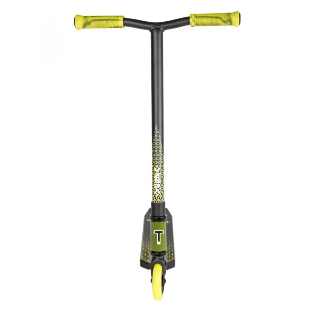 Дизайн самоката будет явно выделяться на фоне других скутеров и лишь подчеркнёт райдера и его стиль. Его Т-образный руль с небольшим изгибом имеет повышенный запас прочности, потому что сделан из высоколегированной стали. Размеры руля подобраны специально для самых маленьких пользователей. Грипсы руля долговечны и выполнены из нескользящего материала. Также руль оснащён барендами, что повышает безопасность райдера. Алюминиевая дека имеет большой запас прочности и покрыт специальной шкуркой, которая обеспечивает отличный контакт с подошвой кед. Она имеет оптимальные размеры, а также возможность установки пег для скольжения. Зажим самоката типа IHC значительно увеличивает прочность узла в сравнении с резьбовым, установленным на аналогах.