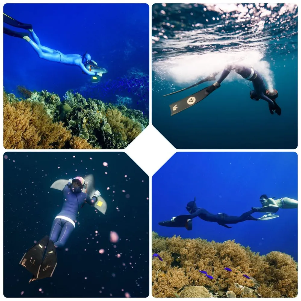 Модель проста в управлении. Достаточно изучить инструкцию и попрактиковаться на небольших глубинах, чтобы понять технику пользования акваскутером. Наклоняясь на глубинах из стороны в сторону ныряльщикам гарантированы скользящие поворота. Переключение скоростей осуществляется педалью газа, находящейся под пальцами покорителя водного мира.